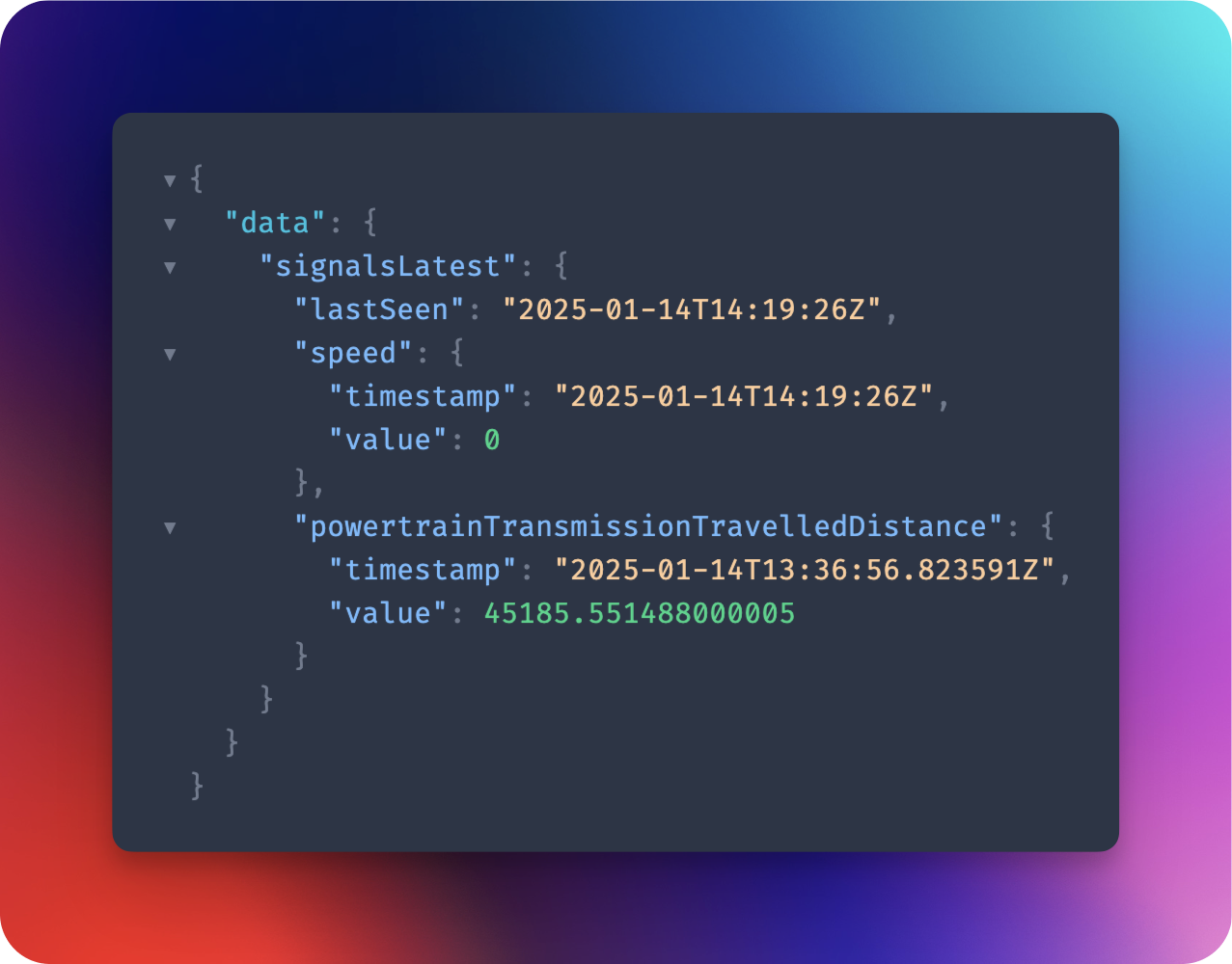 For example, when querying vehicle data, you can now expect to send or receive precise timestamps in the following format: 2025-01-14T14:19:26Z